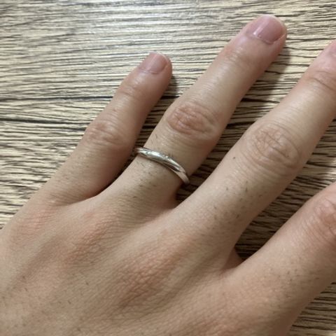 わたしの指は平均よりすこし細目なのでシンプルで細めの指輪にしました。 またストレートリングではなく、ウェーブのものでとても可愛いです。 指輪の真ん中にダイヤモンドがあしらわれているのですが、派手すぎに普段からずっとつけていられそう。