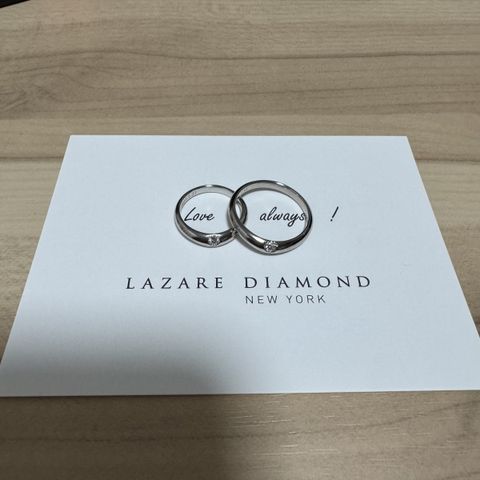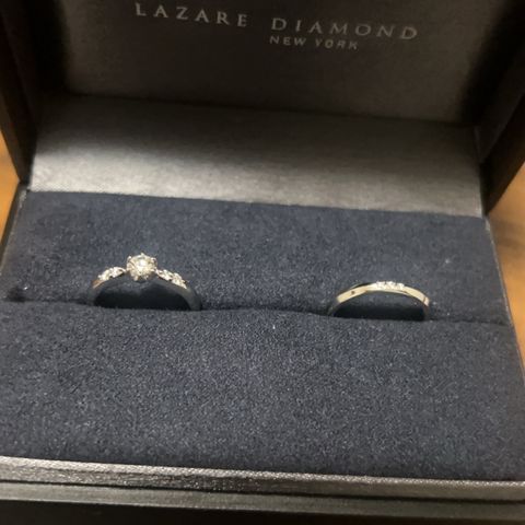 彼の指輪が2テイストのもので作られており、デザイン性に惹かれました。私の指輪はノーマルなものですが、仕事上ダイヤがあって輝きすぎるのはよくないということで、ダイヤ控えめの指輪を選びました。満足です。!