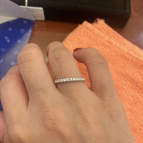 店員の方にも説明された通り、「The 婚約指輪」という感じのアイコニックなデザインです。伝統あるデザインなので流行りに左右されることもなく、誰もが一度は思い描くようなプロポーズができると思い、購入を決めました。ダイヤモンドがリングから爪で持ち上げられているようなデザインなので、ダイヤモンドの下からも光が入って輝きが美しく、ダイヤモンドの存在感が大きくなることも魅力でした。ダイヤモンドの大きさもそうですが、品質にこだわって選んだので、品質を十分に発揮できるデザインに決めました。