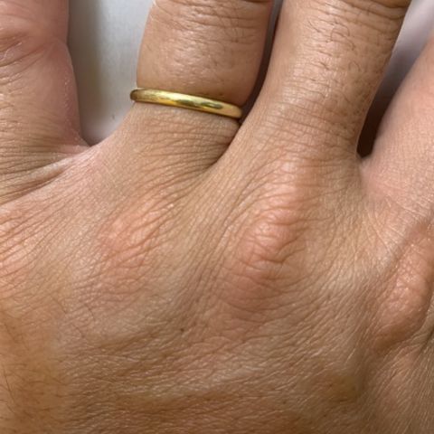 ずっと着けっぱなしにするので 着け心地にこだわったシンプルな指輪。 肌と接触する部分に角がないので、 少しきついぐらいのサイズを選択しましたが ストレスなく着けておけます。 色も優しい金色なのでいやらしくなくて良いです。