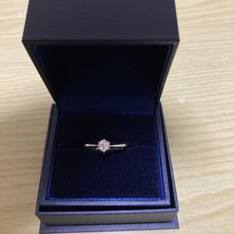 プロポーズで彼からいただきました。ダイヤモンドのカットが非常に繊細で光の反射がとても美しいです。写真だと伝わりきらないぐらい輝いています。デザインもシンプルだけど存在感があってとても気に入っています。一生の宝物です。