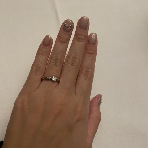 ティファニーの代表とするクラシックなデザインで横から見た時のデザインが可愛く一目惚れしました。 上から見るとダイヤが目立つようなデザインとなっており、決してカラット数は大きくありませんがしっかり存在感を出してくれます。 歳をとってからも長くつつけられそうなデザインのためおすすめです。