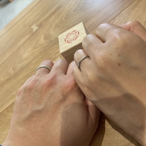 2人とも普段は指輪などのアクセサリーは付けないので、オシャレなものより、シンプルなものを探しました。 シンプル且つ、手元を見ていつまでもトキメクデザインを探していると店舗で相談していくつか提案をいただいた中から選びましたが、見るたびに可愛いなと思えるので、このデザインにして良かったです。