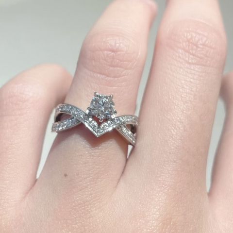 つけている本人だけが横から見る機会が多いので、横から見たときのデザインを1番重要視していました。 ロイヤルアッシャーさんに初めて来店し指輪を横から見た時に、可愛すぎて見惚れました! ダイヤも白くキラキラ輝いてみえます。