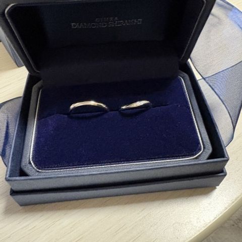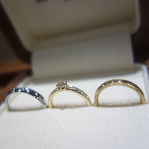 私の指輪は派手過ぎず、普段使いできて、ダイヤモンドが埋め込まれている為家事をする時も外さなくてよいデザイン、夫の指輪は1部つや消しをしてもらっており、キラキラし過ぎず、手に馴染むデザインにしてもらった。