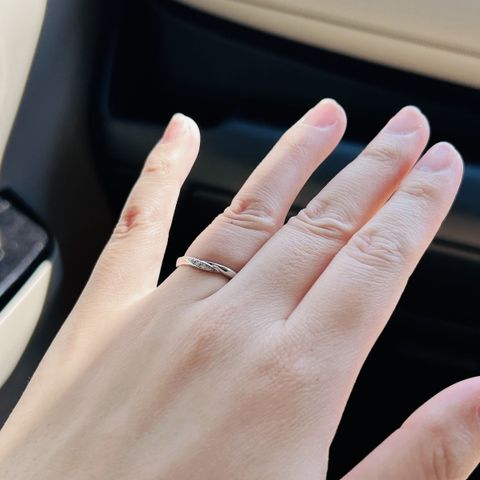 シンプルで毎日つけられます。ほんの少しウェーブがかかり細く、指を綺麗に見せてくれてとても気に入っています。付け心地もつけているのを忘れてしまうほど違和感がなく馴染んでつけやすいです。そしてどこからみてもダイヤの輝きが綺麗です。