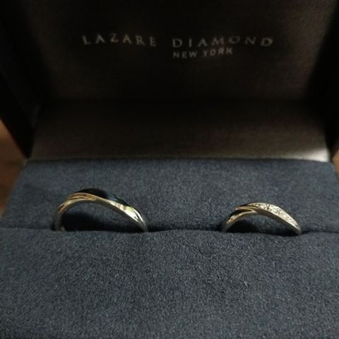 最初はダイヤモンドシライシの指輪を数点広げて見せていただいたが二人ともしっくりくるものがなく悩んでいるところに店員さんからエクセルコダイヤモンドにもシンプルで良いものがあると見せていただいたのが一番気に入ったので選びました。シンプルでありながら男性用、女性用ともにアクセントがあるのが良かったです。