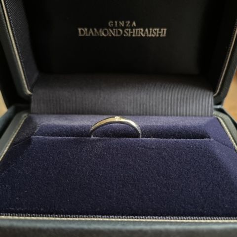 ダイヤ5石が並んだストレートタイプの結婚指輪です。同じもので3石、7石もありました。3石だと物足りなく、7石だとギラギラし過ぎてほぼハーフエタニティのような感じでした。間をとって5石にしました。 デザイン的にはシンプルなストレートタイプの指輪。一つ一つのダイヤが大きくてキラキラ感がたまりません。それでいて主張しすぎず落ち着いた印象なのがミキモトらしい奥ゆかしさを感じます。 少し太めで丸みがありぷっくりしているので、手が大きくて指が太い私にぴったりでした。 婚約指輪(別ブランド)がストレートタイプなので結婚指輪と重ね付けしても合いました。
