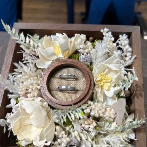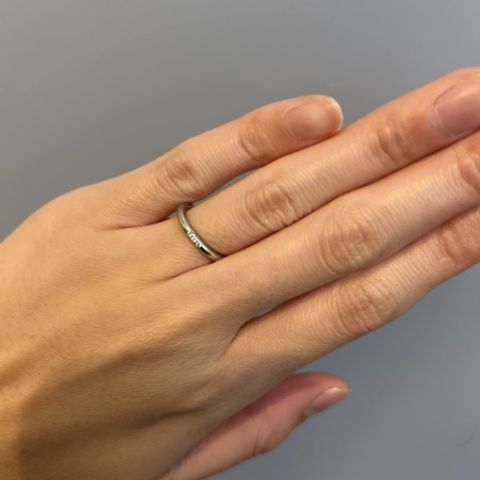 プライベートのときに他の指にリングをつけることが多いので、他のリングと合わせた時に馴染みやすいデザインのものにしました。 本体はマット加工で、片側の縁が鏡面加工で上から見た時にアクセントになり気に入っています。