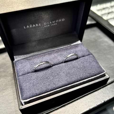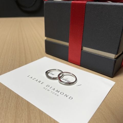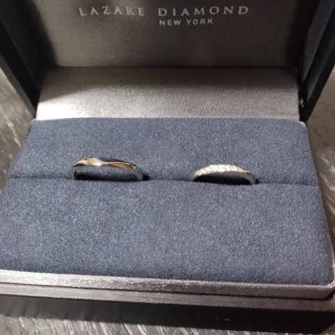 2番目に検討していた店がラーザールダイヤモンドさんで、初めて見たにも関わらずこちらの商品が良いなと思いました。指の形に馴染むウェーブが印象的でした。 他店舗で似たような商品もつけたのですが、女性側の指輪はラザールさんの物が一番華やかに見えたのでこちらの商品に決めました。