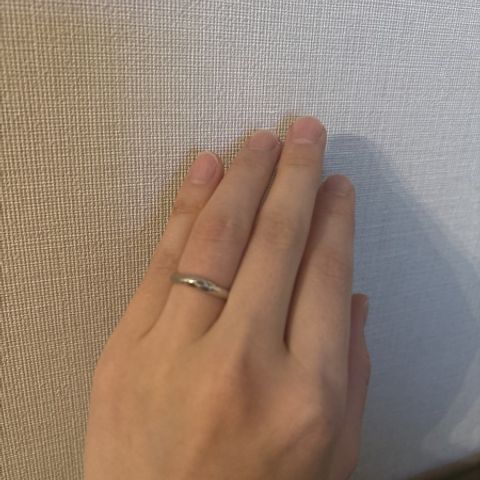 着け心地がとってもいいです。 指輪の種類により指が荒れてしまうので、彼が色々と考えて選んでくれた婚約指輪と同じお店で結婚指輪も購入しました。 シンプルなので、普段着にも合うし、少し磨くとピカッと光ります。