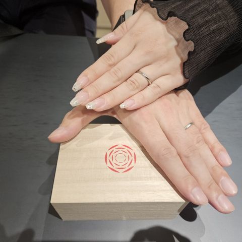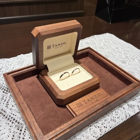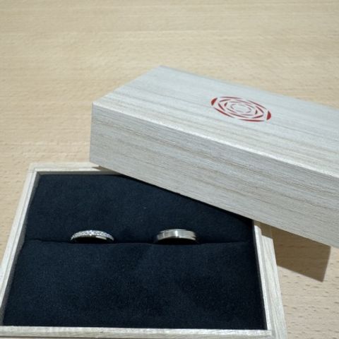指輪の入っている木の箱の模様が一点物で、特別感があります! 開けた瞬間キラキラ輝いていて、宝物を開けるかのようなワクワクが感じられました!一生つけ続けます。 本当にありがとうございます。 お店の人もとっても優しく、楽しみながら指輪を選べました! おすすめです!!