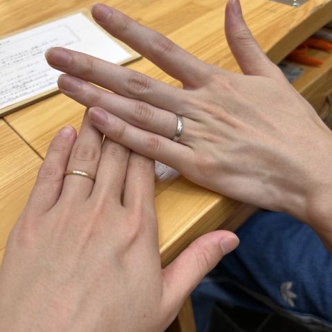 フルオーダーでオリジナルの自分たちだけの結婚指輪が作れるとSNSで見つけてここに決めました。 私たち夫婦の指輪は2人とも全く違うデザインにしたのですが、それぞれの思い出の地や縁起のいいものをモチーフにし最高の物ができました。