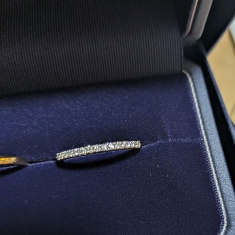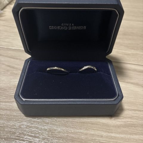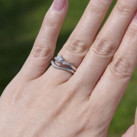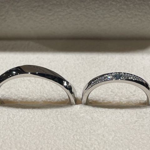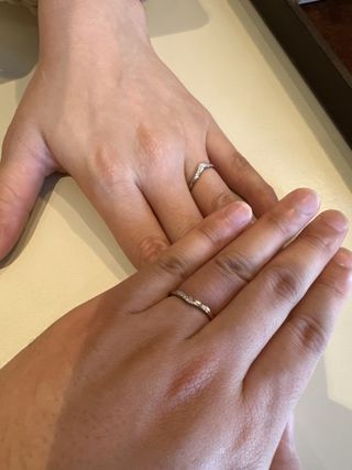 デザインはとにかく毎日つけるため、表面に装飾、ダイヤが施されていない、シンプルなものを選びました。 シンプルな分、どんなシーンでも使えるのではないかと思います。家事と育児をしているため、気を遣っていても、どうしても周りにぶつけてしまいがちですが、メンテナンス面や、アフターケアが整っていて、全て無料でできるところも素敵だなと思いました。高価な買い物になる分、アフターケアが整っている店舗には感謝しかないです。ふらっと店頭に立ち寄った場合でも、指輪のクリーニングを無料で承ってるみたいなので、そちらはいくたび利用しようかなと密かに思っています笑