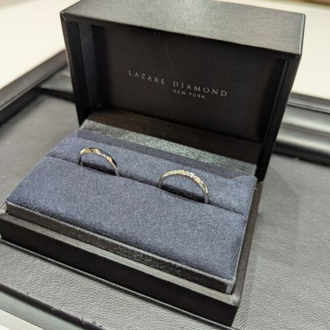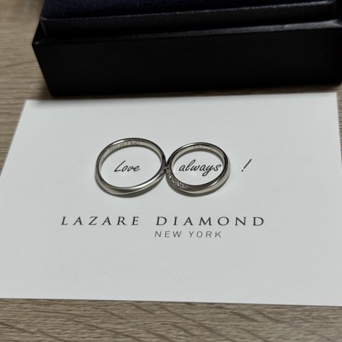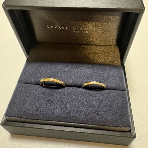 キュートすぎず、シンプルすぎず、普段付けていてもどんな服装にも合うような指輪を探していました。 そんな中ラザールダイアモンドさんのこちらの指輪を見つけて、これだ!と思いました。 実際に店舗で見てもやはりこれが1番私達にとってしっくりくるデザインで、選んで良かったです。
