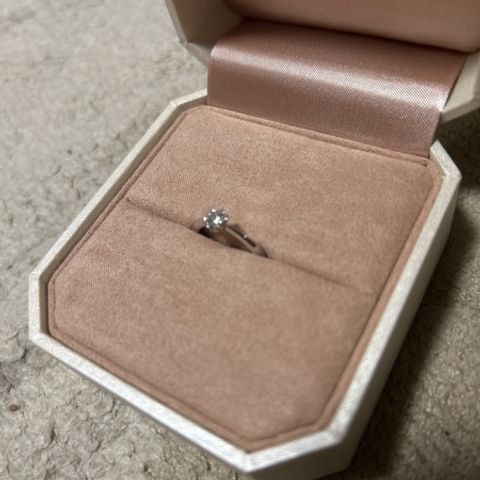 シンプルなものが好きなので、ダイヤモンドは控えめにしました。スターダスト加工にすることで輝きが増して見えるのでとても可愛いです!指輪のサイズも0.5刻みで対応してくださったので、ピッタリで嬉しかったです!