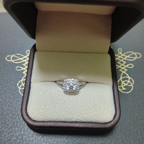 指輪デザインはお花の形のものが良かったのでそれを購入した お花の形にすることでダイヤがより大きく見えるためおすすめ ダイヤの選び方などを詳しく教えてもらったのでオススメのものを購入しました。リングの部分もスルッと入って気持ちいい感じです。
