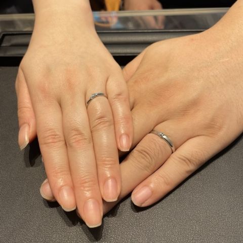 結婚指輪の付け心地が夫婦共に気に入った。デザインも洗練されていて長くつけても飽きなさそうと思って決めた。婚約指輪は他ではあまり見ない四角いダイヤが一度見たら忘れられず婚約指輪もここで決めることにした。