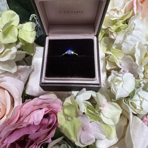 メインのダイヤの隣に細かいダイヤを左右2つずつ付けてシンプルながら少しボリューミーな見た目でフォーマルな場でも合いそうなところが良いです。 ダイヤ選びもこちらの要望をしっかり聞いていただき納得の行く物を作っていただけたことも感謝です。