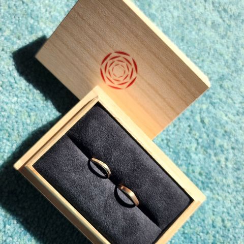セミオーダーでお願いしたのですが2人で納得いくまでデザインを吟味できました。自分たちだけの素敵な指輪ができたのでとても嬉しいです。色味もシルバーやゴールドだけでなくさまざまなニュアンスの色から選ぶことができました。指輪の木箱にも想いがこもっていてとても気に入りました。