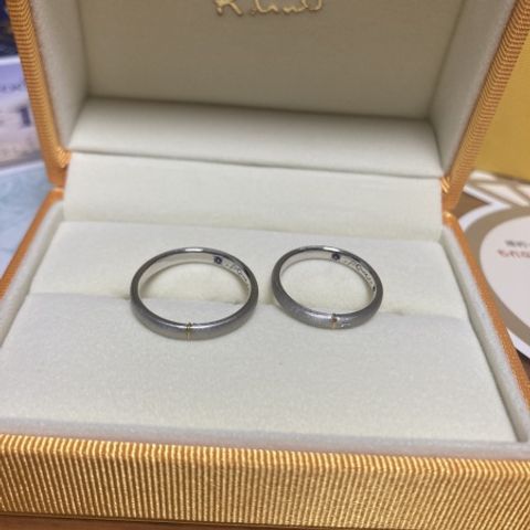 2人が納得のいくリングを選ぶことができました。女性の結婚指輪は斜めにダイヤモンドがあしらわれています。婚約指輪はセンターにダイヤモンド、半分まで小さなダイヤモンドが並んでいます。せっかく買うのだから使える機会を増やしたい、とパートナーの思いがあり、重ね付けできるデザインのものにしました。男性の結婚指輪はセンターにダイヤモンドポイントというマット加工がされています。ちょっとしたデザインがグッと来ました。包の箱もとても洗礼されていて、これからとずっと大切にしたいと心から思っています。
