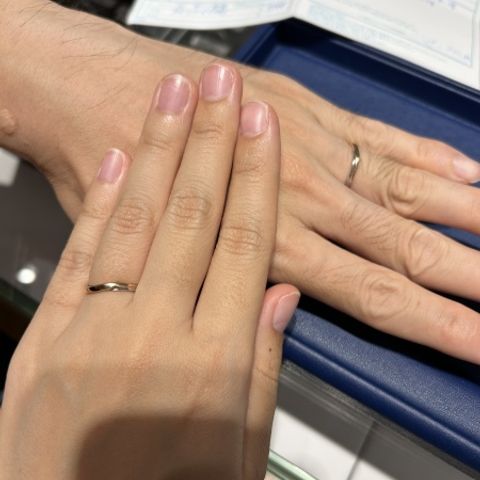 シンプルかつ何年つけても飽きの来ないデザインと、メンズの方はピンクゴールドに少し艶消し加工がしてもらい人と被らないデザインがとっても気に入ってます! 指輪を選んだ時に、指の診断をしてもらったので自分たちに合う指輪を購入できました。