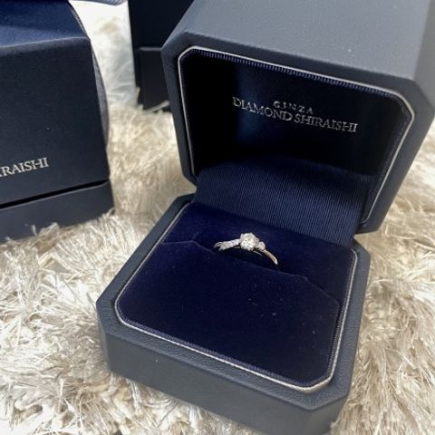 指輪デザインはお花の形のものが良かったのでそれを購入した お花の形にすることでダイヤがより大きく見えるためおすすめ ダイヤの選び方などを詳しく教えてもらったのでオススメのものを購入しました。リングの部分もスルッと入って気持ちいい感じです。