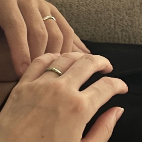 シンプル。角をなくす加工がされているので、着け心地が滑らか。付けていることすら忘れるほど馴染む。生涯つけるなら、シンプルで着け心地のいい指輪がおすすめ。婚約指輪は、大きめのダイヤモンドが一石付いているものが多いが、日常的に付けることを考えて、シンプルなデザインを選んでくれた。シンプルでもカーブが描かれているデザインで、シンプルすぎないデザインがすごく好みだった。
