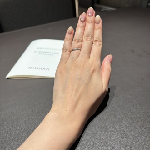 最初はどのデザインにするか、とても悩んだのですが、店員さんと一緒にえらび、デザインの可愛さ、着けたときの心地がすごくよいです。キラキラしていてずっと見ていたくなるような指輪に出会えてとてもよかったです。