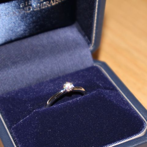とても綺麗なダイヤモンドをおすすめしてくださいました。本当に綺麗で澄んでいて美しいです。リングは2人で選びましたが、相手の好みもありシンプルなデザインにしましたが、それでもトップが綺麗で、リングが仮に地味でも全然そんなことを感じさせません。