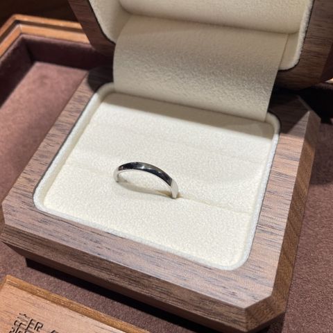 希望だったSカーブのデザインで、材質はプラチナにしました。当初はダイヤを入れる予定ではなかったのですが、 オススメ頂き入れたところ、完成品を一目見て本当に入れて良かったと思いました! 日常でも違和感なく使えるデザインかつ、ダイヤが入っているので特別な日でも使えるので、大満足です!