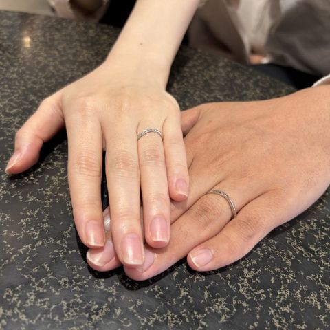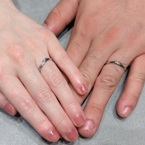 たくさんある指輪の中から2人の意見がピッタリ合う指輪に出会えました。仕事柄派手すぎる指輪はつけることができないので、シンプルだけどオシャレな指輪を探していました。特に男性の指輪は、艶消しの加工がしてあり、他の指輪にないおしゃれなデザインがお気に入りポイントです。
