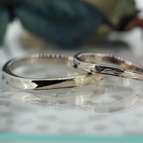 ペアリングで、2つの指輪が揃うことで天使の羽根をイメージしているというところが良いと思いました。また、男性の指輪にマッド加工をしてもらえたことで、リングの煌びやかさを引き立てると共にオリジナル感も演出できて良かったです。