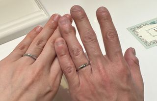 シンプルなデザインでかしこまり過ぎず、カジュアルな普段着に合うようなファッション性の高い所がとても気に入っています。セミオーダーで、お互いに好きな色やデザイン、加工が選べて、世界にひとつだけの納得のいく結婚指輪ができました。