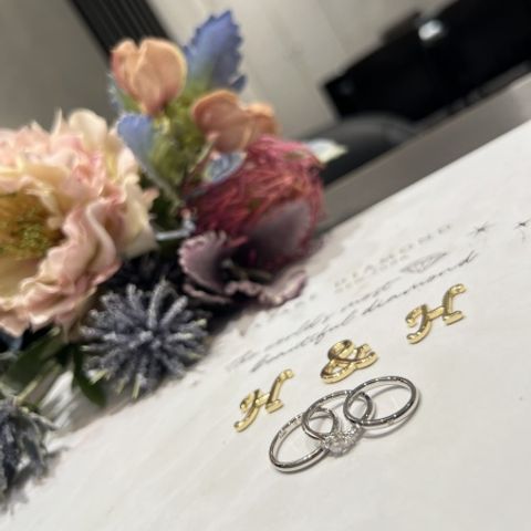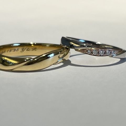 他店で様々な指輪を拝見し、各々のお店でいいなと思うデザインを組み合わせて完全オリジナルのものを作ることができました。 内側には名前と日付と併せて、自分で書いた絵をそのまま刻印できたのがいい記念になりました。