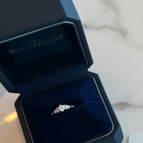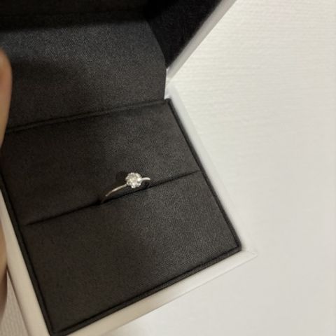 宝石箱の中を覗いているかのような星空のイメージがすごくいいなと思ってロマンチックでデザインも素敵だったので何個か候補があった中、ダントツでこの指輪が1番しっくりきました。キラキラで可愛く素敵な指輪です。