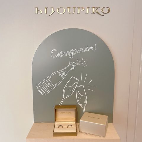 ・自分たちの肌色に合った素材を試しながら選べたこと ・ストーンを使わなくても一部にハンマーテクスチャーを入れて、ワンポイントをいれられたこと ・光沢感ある仕上げにできたこと ・既製品を買うよりも、思い出が作れたこと
