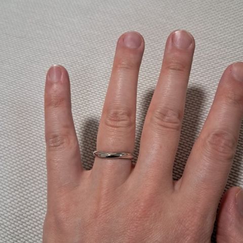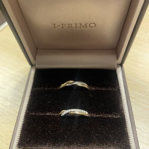 2人の好みが違ったので、おそろいではなくてもそれぞれに似合ったデザインで作って頂き大満足です。 夫のは平打ち、私は甲丸のコンビミルで、ゴールドの色も赤みの具合が選べて1番肌なじみのいい色を選んで頂きました。 さりげないけどおしゃれなデザインが本当に気に入っています。