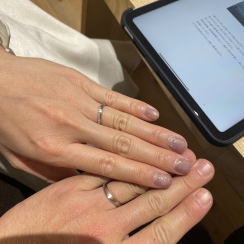 いろいろな要望を聞いてもらい、それぞれの好きなデザインで作っていただきました。つけた時の違和感のなさは普段指輪をつけない私には感動でした! ダイヤモンドを指輪の内側に1つ入れ、秘密感のあるところも大満足です!