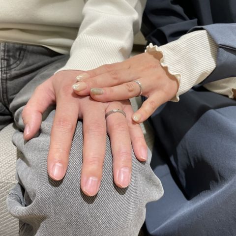 形にこだわりました 2人で作っていく形でしたので、いわゆる結婚指輪ぽくしている重々しい感じではなく、カジュアルでデザインにこだわった形にしております。 日常でもさりげなくおしゃれにつけ続けられるのではと思います