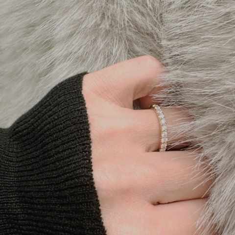 シンプルで結婚指輪と合わせやすいデザインです。 ダイアモンドにもこだわりがあって、輝きがとても上品なものになっているところがお気に入りです。 主張が強くならないように、存在感は忘れずに身につけられる指輪だと思います。