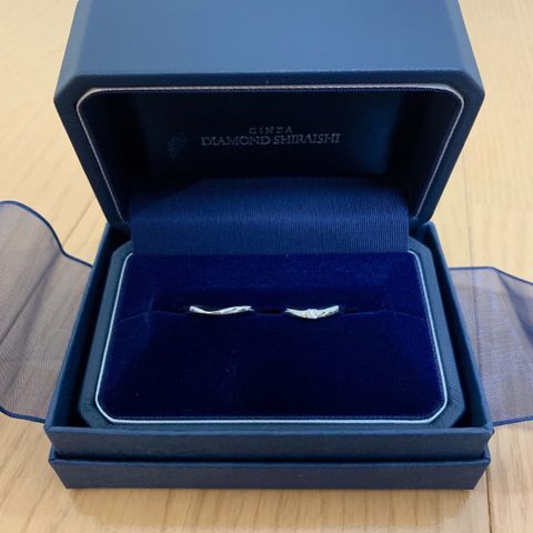 とにかくダイヤの煌めきが素晴らしく、ほかのブランドさんと比べてもキラキラ度合いが非常に高く、大変気に入りました。 私はやわらかなV字型を希望していたので、理想通りの指輪を見つけることができ大満足です。