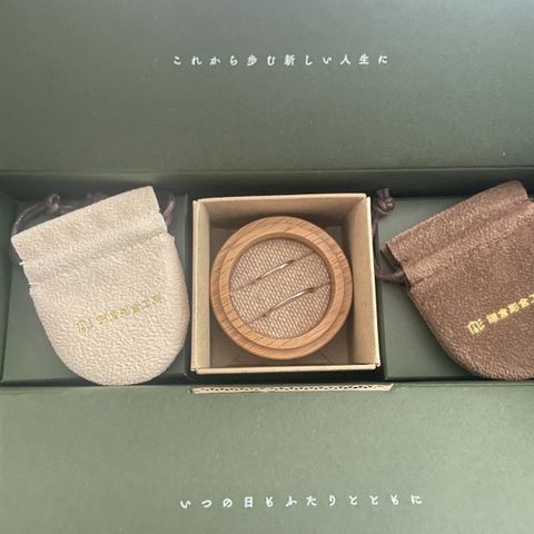 デザインの収まりがよく、とても付け心地が良かった。 男性用の縁結は華美すぎず、シンプルすぎずでちょうど良い塩梅だった。 女性用の時結はラザールで購入した婚約指輪との見た目の親和性が良く、重ね付けした際の一体感が綺麗だった。