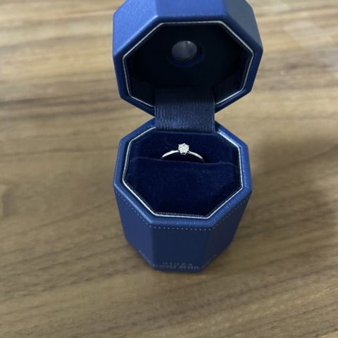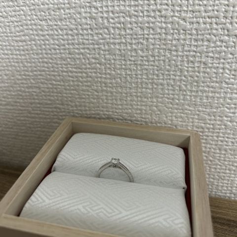 1粒のダイヤだけでなく、指輪の腕部分にもダイヤが散りばめられており綺麗。 インスタでも取り上げられており、デザインがかわいいと思ったため、来店し、実物もよかったです。 柾目という名前の由来も素敵だったため購入しました。