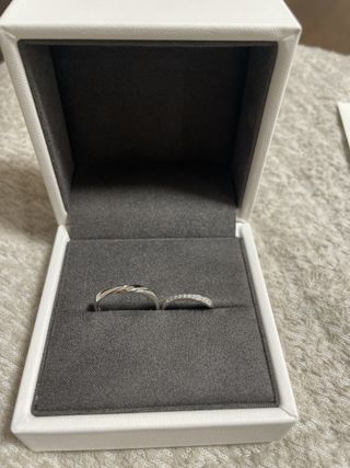 歳を重ねても違和感なく付けられるような、普遍的に良いと感じられるデザインだと思いました。 妻の婚約指輪は別で購入したのですが、デザイン的にも、形状的にも、重ねづけに大変良くマッチしていたのも決め手です。 男性側の方の指輪としても、「2人で想いは共有しつつ、ビジネスシーンにも馴染むもの」を探していた私には、しっかりコンセプトを共有しつつ、洗練された指輪ということでマッチしていました。
