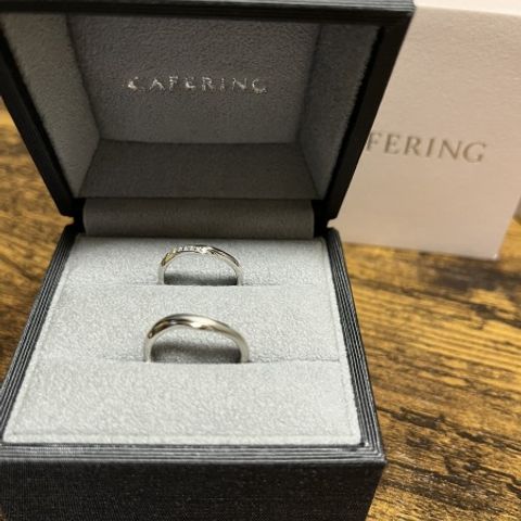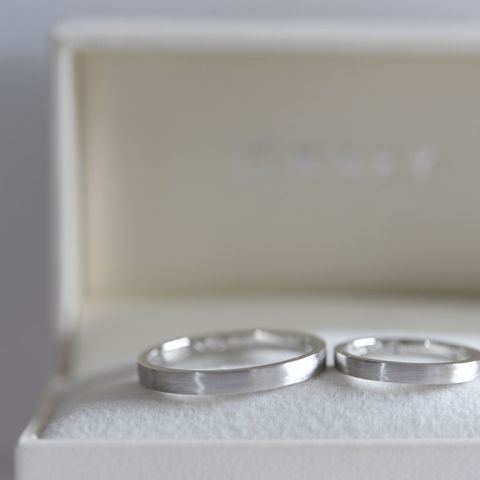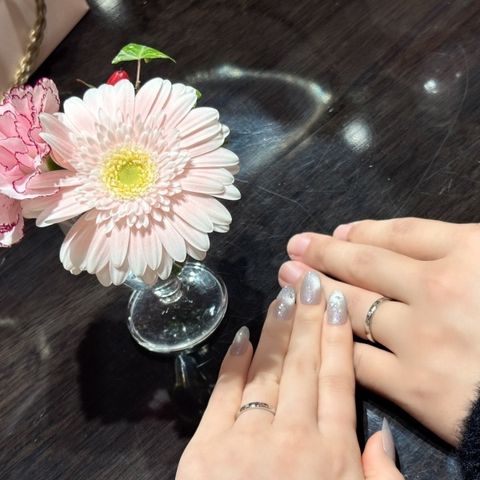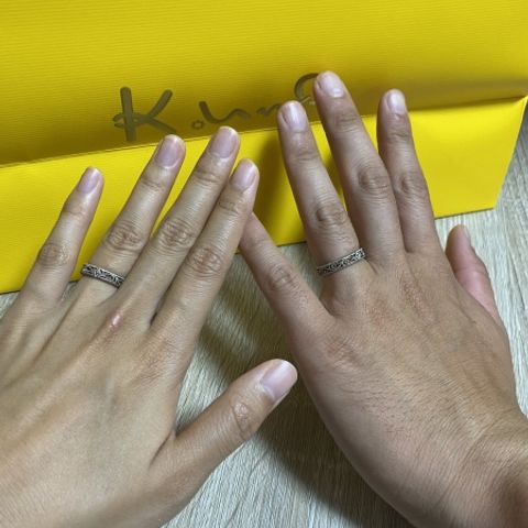 お店で拝見させていただきまして、この指輪に決めました。普段使いのペアリングはいつも着用しているので、それに似たデザインが良いなと思い、このデザインにさせていただきました。シンプルで特別感があるデザインですので、さりげなく着用したい方にはオススメです!
