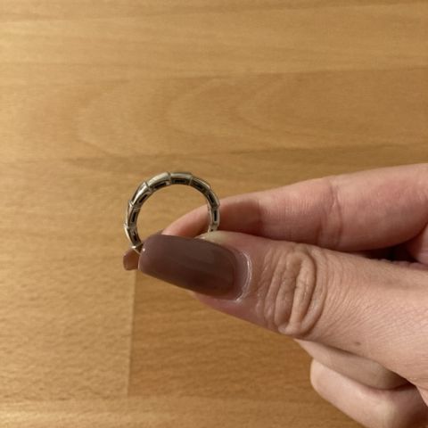 セルペンティという、蛇の柄の指輪を選びました。指輪選び中に初めて知った柄で、派手すぎなくて丁度いいなと思い、最終的にセルペンティにしました。2人とも同じデザインの指輪にしたかったので、それも叶うことができるデザインです。
