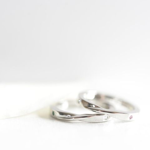 指輪のオプションがすごく多かったが、シンプルで普段からつけてられるようにした。誕生石をプレゼントで選ぶことができたのでお互いの誕生石を入れれてよかった。自分たちでお互いの指輪を作ったので愛着がわきやすい。