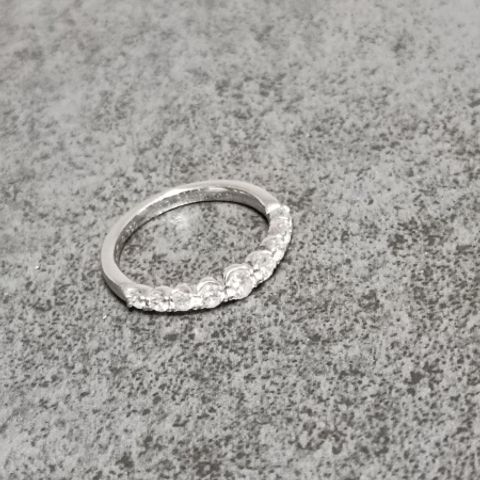 エタニティリングに憧れており、上品でエレガント、長く使い続けたいと思える指輪です。11石のダイヤモンドがキラキラと輝き美しいです。しっかり両サイドまでダイヤモンドがついています。手のひら側は石が取れるリスクやサイズ調整できなくなると聞き、ハーフエタニティにしました。