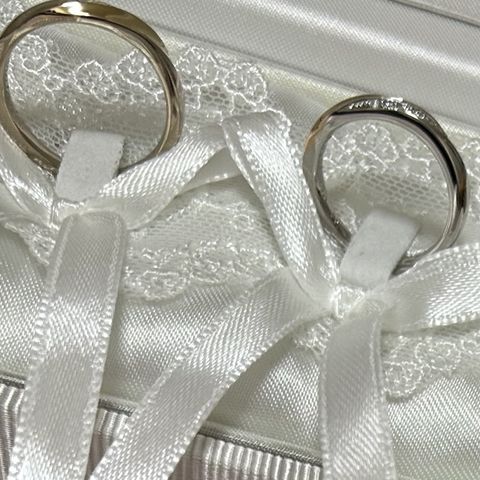 私は真ん中に小さいダイヤが3つ入ったデザイン、彼はシンプルですが私のものより少し太めのデザインにしました。お互い手がそこまで大きいほうではないため細目の華奢なデザインが手に馴染み、着け心地もよかったのでこちらの指輪に決めました。また、私のこだわりで夫婦でお揃いのように見えるデザインがよかったため、ストレートのデザインのものを選びました。今後ずっとつけっぱなしで過ごすことを考えていたため、シンプルで長くつけられるものを選べてよかったと思います。